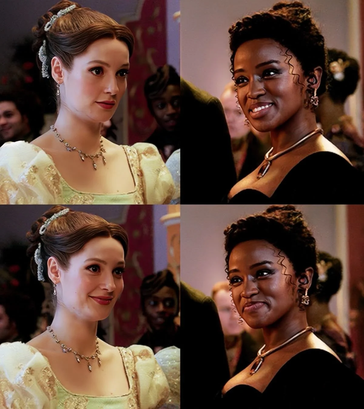 As soon as Michaela introduced herself to Francesca, saying her name, fans lost their minds. It is important to understand the context, to understand that the showrunners have done a massive gender swap here: in the original epilogue, John unfortunately dies and Francesca goes on to find love with John’s cousin, Michael Stirling, now introduced in the live-action as Michaela. There’s a whole scene in the Season 3 finale devoted to Francesca’s immediate and shocking attraction to her, and I knew right then and there that they were going for it: we were getting lesbian Bridgerton.