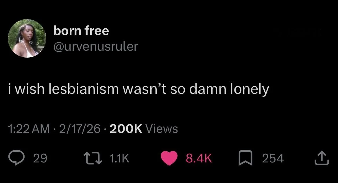 From being a multi stan to having multi-identities, the concept of lesbian loneliness is not talked about in way too many spaces. If a man is tolerable to look at, that does not mean I want him. Culture and identity can amplify how disrupting societal norms feel scary and brave. Lesbian loneliness does not mean I am forever alone; there is a non-man for me — a friend or a lover (or something inbetween).