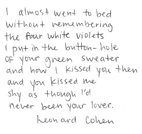 On one of the many occasions where I stood behind the register at the bookstore daydreaming instead of shelving books or straightening, I pulled Leonard Cohen’s Book of Longing from the poetry section and read it in one sitting. I was enthralled by the imagery, the hilarity, and the craftsmanship in Cohen’s rather flippant poetry. The majority of the poems were love poems, which I’m not typically one to read, or especially enjoy. In my experience, I’ve found that verses that focus on romantic intrigue spend too much time in what is rose tinted—like a blazon—and not enough in what is below the surface level, the strange, the scary, the funny, the weird, the coincidental. Cohen’s poetry subverted my expectations and I reveled in the simplicity of his diction. It was an easy read and it was easy to imagine myself and my own love interest.