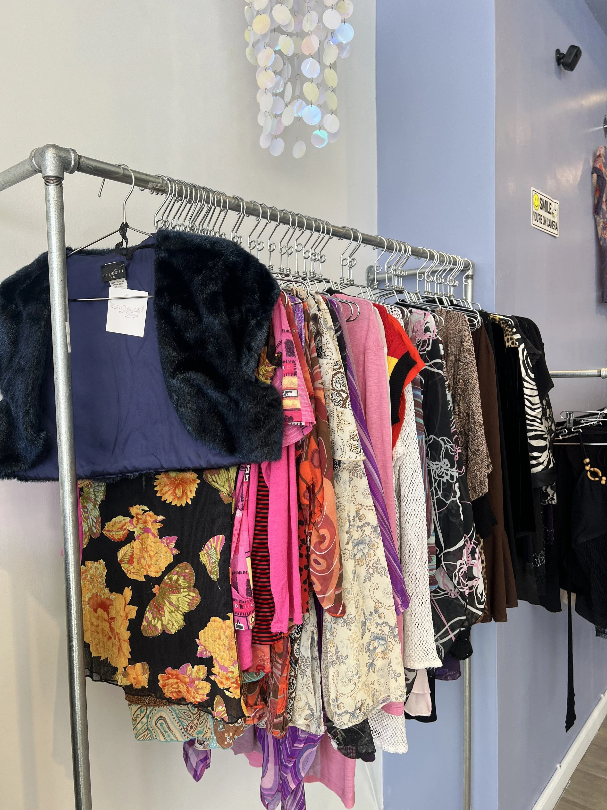 A: 9 Lives Vintage comes from my many years of having to start over, never shying away from a rebrand or opportunity to start fresh. I love astrology, cats and quite frankly new beginnings. Since cats have 9 lives and vintage clothes also have multiple lives, I thought it was a perfect name. I wanted to curate a space that was also spiritual and relaxing. I have dimmed lighting, beads, star decor and a calming aura for the 2000s earthy aesthetic lovers.